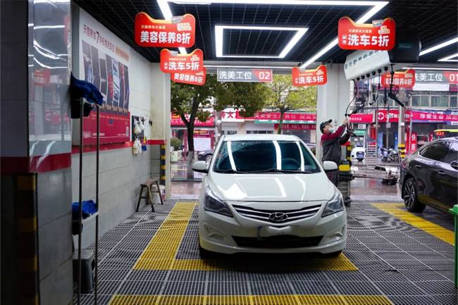 天猫养车齐昌大道店内宽敞整洁的洗美工位