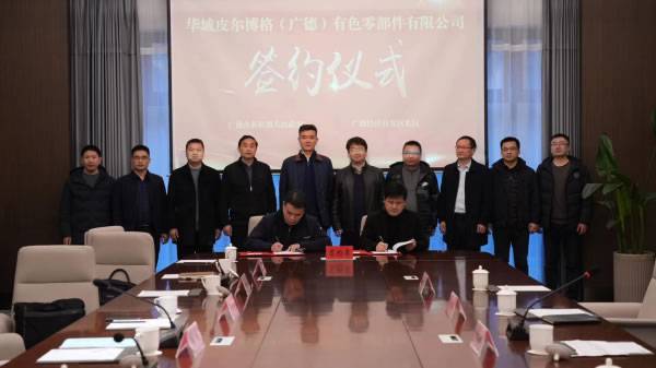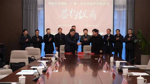 2月13日下午,华域皮尔博格年产6万吨汽车零部件生产项目签约仪式在新杭镇举行。市委常委、镇党委书记马亮及市经信局、市生态环境分局、市招商合作中心、汽车轻量化招商分局负责人现场见证。镇党委委员李清锋代表新杭镇与华域皮尔博格(广德)有色零部件有限公司签约。