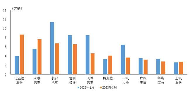 据中国汽车工业协会统计分析,2023年1月,销量排名前十位的SUV生产企业共销售51万辆,占SUV销售总量的67.2%。