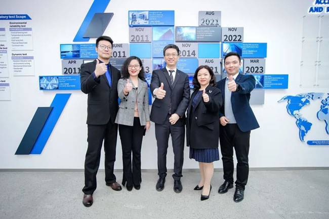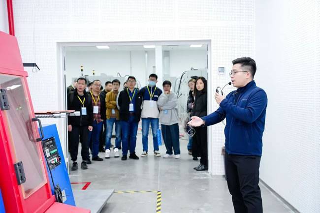 随后,与会者一行参观了TÜV莱茵长三角汽车零部件实验室。其中,汽车电子EMC实验室立足于传统汽车和新能源汽车电子部件,在测试能力方面,除常规汽车电子EMC测试外,增加了混响室法、ISO 7637-4高压瞬态抗扰试验、高压电气性能试验等,涵盖了汽车上所有高压和低压电子部件;汽车零部件测试实验室,场地规模在上海实验室的基础上扩大超过2倍,并配备多台大功率电源、水冷设备,以及多台1600L温湿度试验箱满足智能驾舱的测试需求,并与TÜV莱茵上海汽车零部件实验室建立协作机制,发挥协同效应,为长三角地区的客户提供更便捷、高效、优质的服务,推动产业转型升级,以本地化服务、专业技术及资源优势助力区域经济高质量、可持续发展。