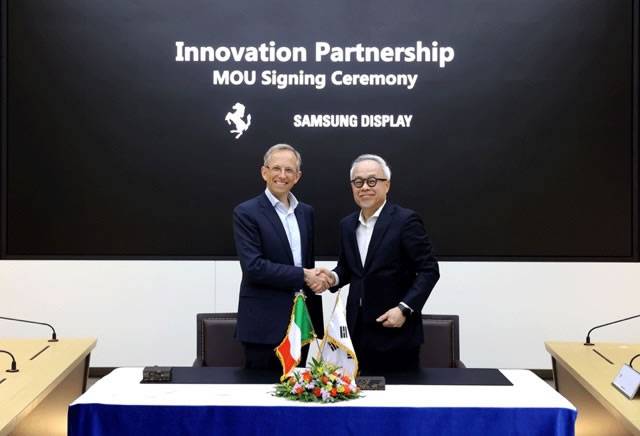 法拉利和三星显示器的负责人在韩国牙山市(Asan)签署了一份谅解备忘录,但是双方并未在这份备忘录中披露本次合作的财务细节。