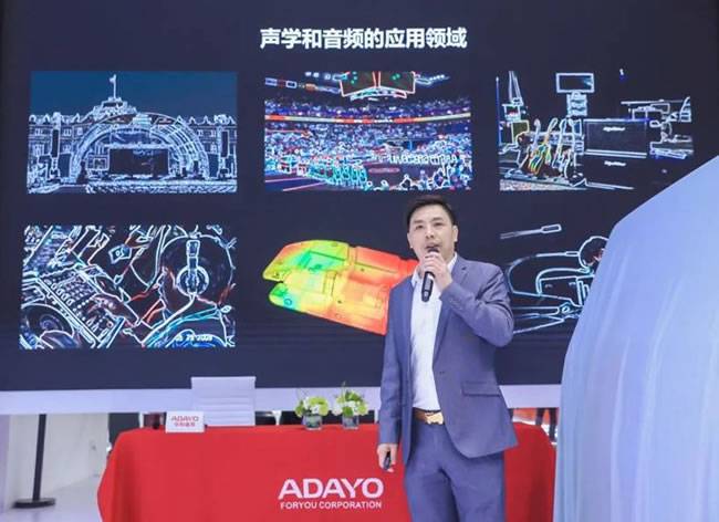 华阳通用数字声学单元总监汤磊对声学产品进行讲解和演示