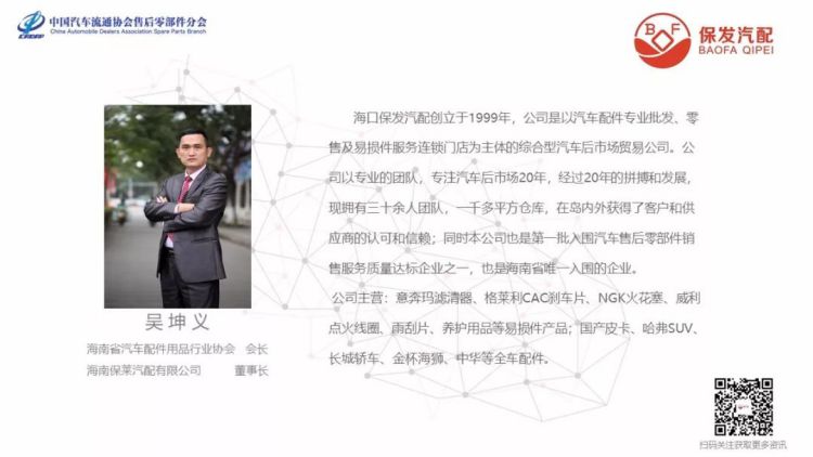 今天很高兴邀请到正澜、保发、美丰、三头六臂四家企业的主要负责人分享,他们的业务涵盖了管理咨询、零部件制造、经销、供应链服务几种成分,希望嘉宾们的真诚分享,能够推动会员家人们互联共享,合力发展。