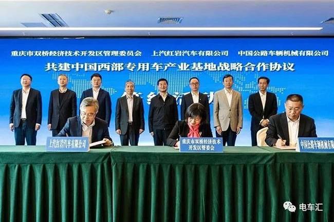 4月26日,上汽红岩汽车有限公司(简称:上汽红岩)与重庆市双桥经开区、中国公路车辆机械有限公司共同签署了《共建中国西部专用车产业基地战略合作协议》。同时,上汽红岩与中国公路车辆机械有限公司基于重型汽车市场需求及车辆电动化、智能化发展趋势,签署了《战略合作框架协议》,在出口重卡、新能源重卡的开发、制造、市场拓展等方面开展全面合作。