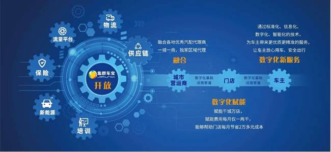 集群车宝致力成为全产业链的“路由器”,是链接产业链上游到终端门店的基础设施管道。
