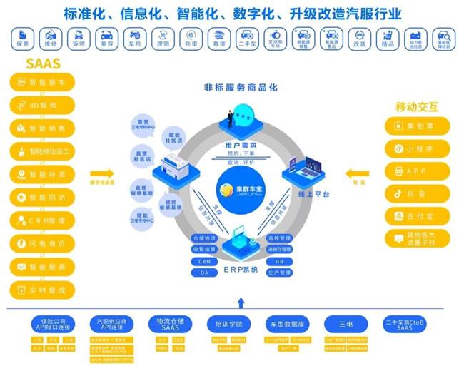 遥想十年前,2013年春节,我萌生投身汽车后市场创业的想法,自己不会开车,也不懂汽修,带着一群不会开车的国美前同事,怀着在汽车后市场创办一家全国性的汽服连锁店的梦想,义无反顾的一头扎进荆棘丛生的汽车后市场。那一刻原有的光环一切归零,从零开始,一群不懂车的外行人,用了五年时间,在单一城市开设了近百家直营汽服连锁店,创国内单一城市布局密集度之最,也是这群不懂车的外行人,也不懂互联网,更不懂编程,一群“网盲”摸着石头过河带着集群车宝走上数字科技之路。一路走来,其中的酸甜苦辣,尤如汽车后市场的“二万五千里长征”,目睹行业十年的风霜雨雪,经历了流量风口、O2O风口、加盟托管风口、供应链赛道风口、SAAS风口到如今的产业互联网风口,经过站在风口猪都会被吹起来的创业大潮的生死考验,很幸运集群车宝还活着,仍然屹立在汽车后市场,虽然走得慢一些,但是很稳健,而且有力。这十年最为自豪的是并没有被外界的风口所迷失风向,从创办之日起,一直致力于汽车后市场数字化基础设施的研发,历经七次融资,百分之六十的融资款用于研发,耗资2.6亿元人民币,历时九年,绘制了8300张demo图,整理清洗30亿条车型数据库,编制70本实战教材,完成1.1亿非标服务商品化sku,成功研发一套汽车后市场独有的集成ERP系统,并基于ERP系统研发一套内驱式的SAAS系统,实现了全产业链闭环的、高度集成的一体化产业互联网赋能平台。快准车服的海哥,曾经发自内心的评价:“集群车宝是我了解的汽车后市场面对标准化、数字化既深入、又投入的企业,甚至有点偏执,做了一件难而正确的事。”