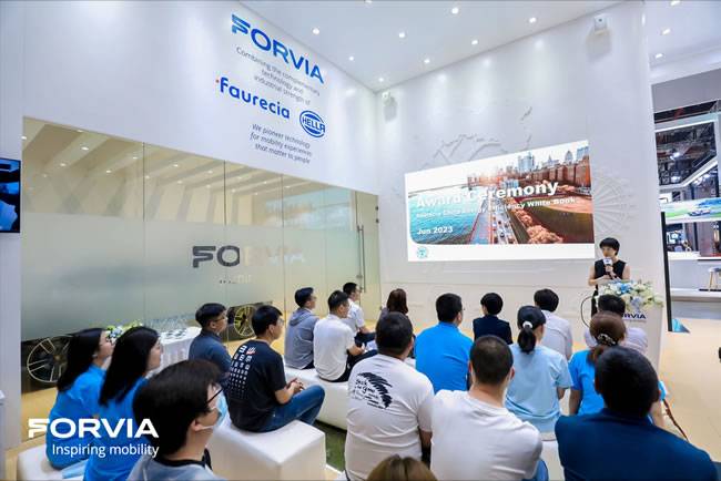 在展会第二天,FORVIA佛瑞亚集团在展台现场举办了佛吉亚中国2023能源效率白皮书颁奖仪式,重点介绍了FORVIA佛瑞亚可持续战略以及能源效率白皮书项目。今年2月,佛吉亚中国区首次举办了ESG推广会,并在会议期间正式启动了佛吉亚中国区“能源效率白皮书”项目。在低碳智慧出行展现场,专家评审们从69个跨事业部已落地的节能项目中选出了节能“最佳案例奖”和“最佳组织奖”,并进行现场分享,与所有人一起朝着创新、可持续的未来前行。