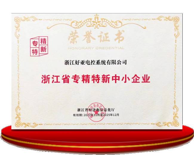 2023年获得“浙江省专精特新中小企业”荣誉称号,是对我公司创新发展成就的肯定,是质量效益优的模范企业的体现,标志着我公司掌握关键核心技术,标志着我公司在企业创新发展方面又迈向一个更高的台阶。