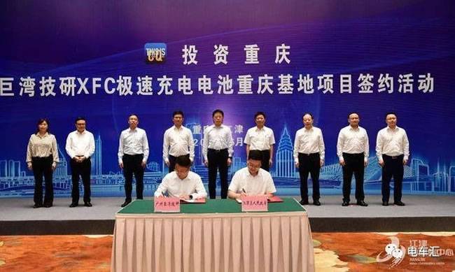 6月15日,江津区与巨湾技研举行签约仪式,巨湾技研XFC极速充电电池重庆基地项目落户江津区,总投资约72亿元。