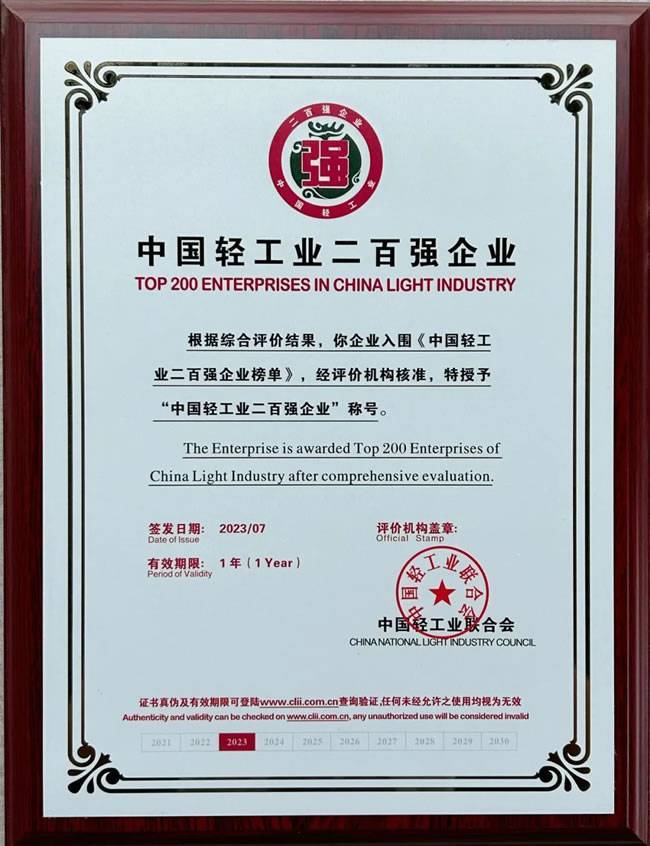 近期,以“迈向世界一流企业 服务人民美好生活”为主题的2023年中国轻工业百强企业高峰论坛在北京隆重举行。会上发布了由中国轻工业联合会组织评选中国轻工业百强企业名单,其中,星宇股份获得“2022年度中国轻工业二百强企业”、“2022年度中国轻工业科技百强企业”及“2022年度中国照明行业十强企业”多项表彰。
