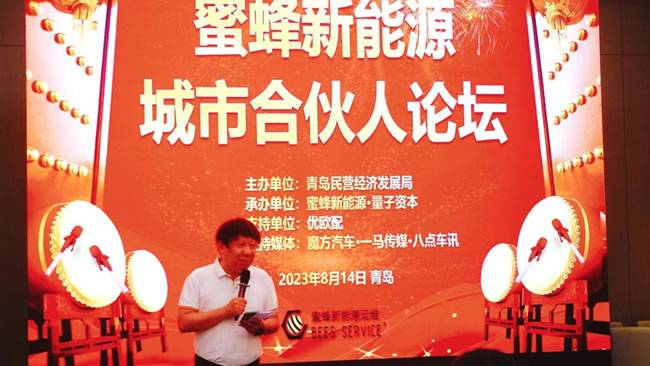 2023年8月14日由青岛民营经济发展局主办、蜜蜂新能源和量子资本承办、优欧配以及魔方汽车、一马传媒和八点车讯等多家支持单位和媒体举行的蜜蜂新能源城市合伙人论坛在青岛成功召开。