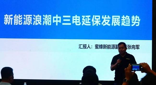 蜜蜂新能源副总裁张向军做了“新能源浪潮中的保险发展趋势”汇报,对新能源三电延保进行了深入探讨,包括从新能源车险的困局、新能源车险的应对思路以及蜜蜂新能源三电延保发展规划等三个方面,为三电保险业务提供了更多的思路和实践经验。