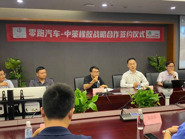 2023年8月23日,中策橡胶集团股份有限公司和浙江零跑科技股份有限公司宣布签署战略合作框架协议,进一步深化双方在汽车领域的合作。零跑汽车高级副总裁曹力、副总裁舒春成、底盘研发部总监杨方、底盘研发部制动经理俞凤桥、整车采购部总监丁永飞、底盘采购部经理汪国樟,以及中策橡胶董事长、总经理沈金荣,集团高级副总经理葛国荣,集团副总经理蒋志强等领导出席签约仪式。