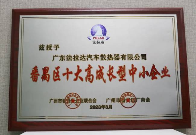 此次评选活动旨在挖掘并表彰在不同行业中迅速成长和具有创新潜力的中小企业,以进一步推动番禺区的经济繁荣和持续发展。法拉达近年来大规模的研发投入,在汽车热管理领域的技术研发和创新能力得到了显著提升,得到了番禺区政府的支持和肯定。