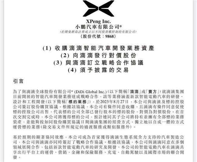 8月28日上午,滴滴出行与小鹏汽车共同宣布,双方将达成战略合作,将利用各自优势资源,携手推广智能电动车及相关技术在全球的应用与普及,共同推动交通和汽车产业的变革。