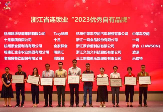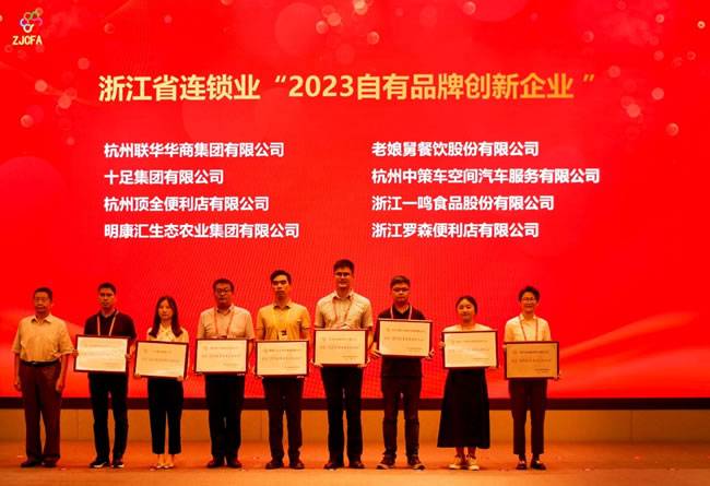 创新峰会现场还进行了颁奖典礼。十足分别获得“浙江省连锁业2023年优秀自有品牌”“浙江省连锁业2023年自有品牌创新企业”和“2023浙江省优秀特许品牌”三项荣誉称号。十足创立于2001年,是中国连锁便利店行业前10强,目前拥有21家子公司,门店总数3300多家,广泛分布于浙江、江苏、上海、安徽等地。