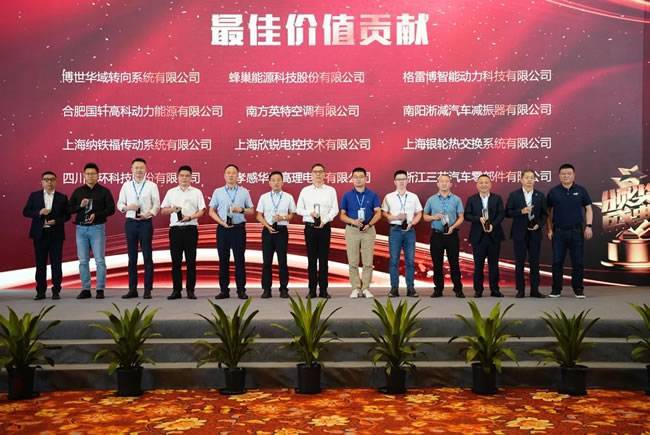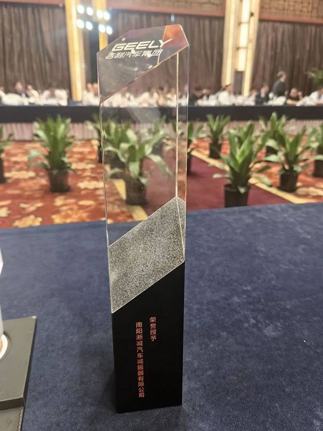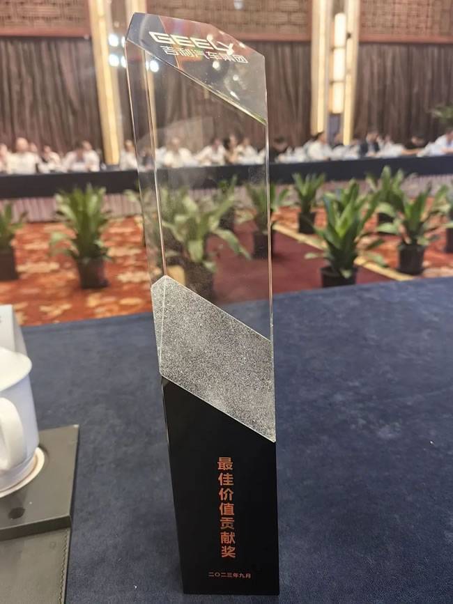 2023年9月15日在吉利汽车集团架构&新能源核心供应商恳谈会上淅减荣获最佳价值贡献奖!吉利汽车集团高级副总裁、CFO采购公司总经理戴庆总亲自颁奖!这次活动由核心供应商参会,举办方在多家供应商中选出了四十五家。