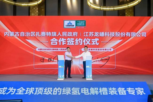 9月16日,龙蟠科技“天蓝1号——更安全的制氢电解槽”天蓝智能装备首台套1000标方电解槽设备下线仪式,乘着“氢”风,如约而至。来自行业各界的领导嘉宾齐聚南京溧水,共商互利合作,共谋发展大计。仪式上,龙蟠科技与内蒙古自治区兴安盟扎赉特旗人民政府正式签署战略合作协议,将为推动内蒙古氢能产业发展,助力我国绿氨、绿色甲醇产品走向世界市场注入“龙蟠动能”。