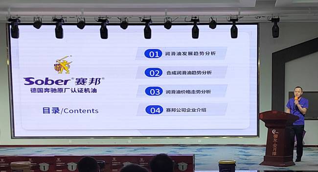 随后,赛邦李总重点介绍了现阶段润滑油行业的走势并进行分析。针对赛邦石化的产品性能、业务范围、研发实力、品牌理念、服务内容等情况,支工进行了认证讲解,让在座客户对赛邦石化的综合实力有了更全面的认识。
