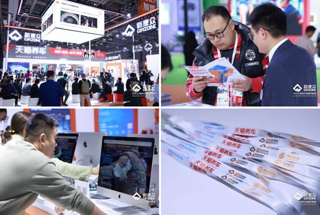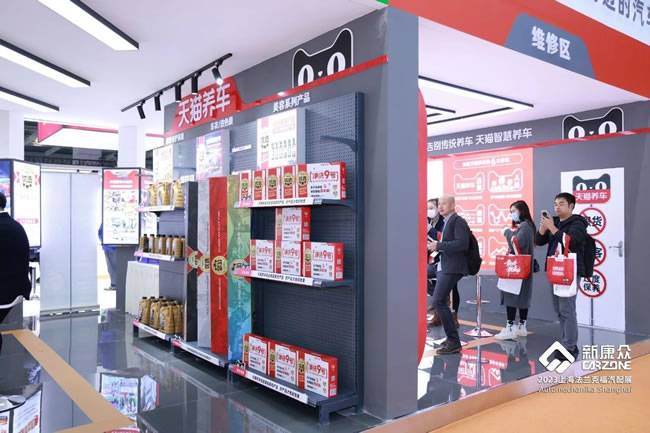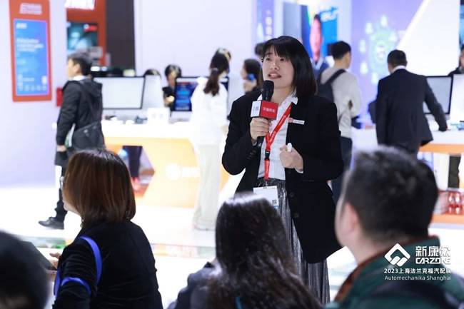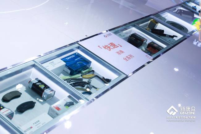 用科技感十足的玻璃长廊拼接出的“配件之路”一直是新康众展台的一大特色,展示了新康众在供应链端经营的全系列产品,涵盖配件、油品、蓄电池和轮胎等多个品类,今年的展会现场依然延续了这一亮眼的设计,吸引了众多参观者驻足观看交流。
