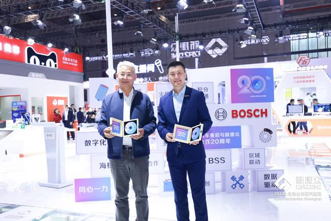 值得一提的是,今年是新康众与博世合作的第20个年头。在今天的新康众展台现场,双方共同回顾了20年间从起初的品牌代理发展为今天全面战略合作的点滴,博世汽车售后亚太区总裁王松涛先生和新康众CEO商宝国先生共同签署了博世汽车售后与新康众合作二十周年暨深化合作备忘录,并给现场的所有观众展示了刻录着双方多年友谊的精美CD。