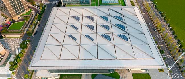 长沙北辰国际会展中心是中部地区领先的绿色二星+LEED金级双认证国际会议中心,建筑突出采用节能环保的理念,采用了光伏发电等技术,室外具备雨水回收、排风热回收等特点,室内则采用了大比例的LED照明,旨在最大限度地节约能耗,减少碳排放。