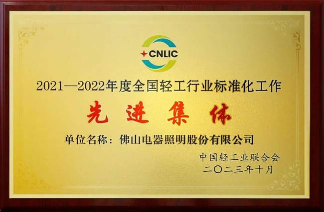 佛山照明坚持“标准引领产品,产品夯实标准”的理念,大力实施标准化战略,凭借在标准化工作上的累累硕果,在今年获评“全国轻工行业标准化工作先进集体”称号。