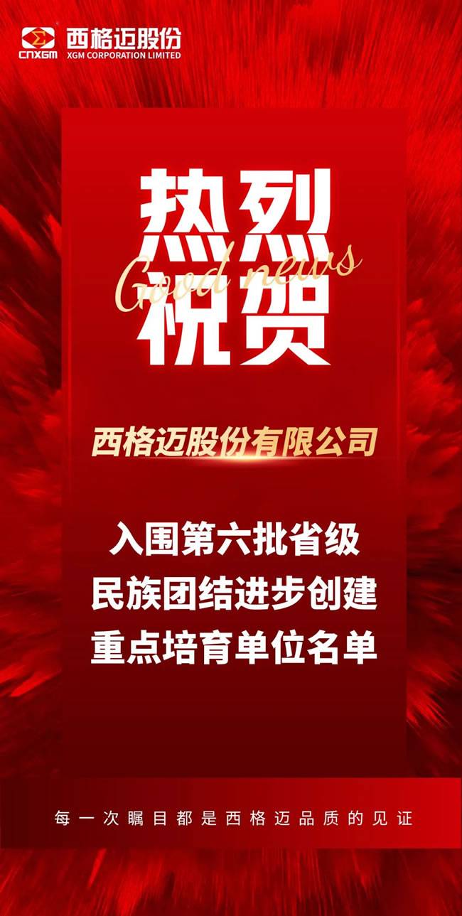 近日,省民宗委发布了《关于公布第六批省级民族团结进步创建重点培育单位、第三批省级民族团结进步教育基地和 2023 年度各民族共同富裕团结进步精品带(区)、民族乡村振兴试点、共同富裕点名单的通知》,西格迈股份有限公司被评为省级民族团结进步创建重点培育单位。