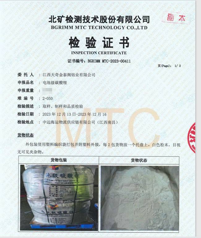 近日,天奇股份的电池级碳酸锂产品顺利通过广州期货交易所交割品检测。广期所碳酸锂期货交割质量标准体系参照工信部发布的《电池级碳酸锂》(YS/T 582-2013),并根据不同原料生产碳酸锂的特点对部分指标进行了调整。