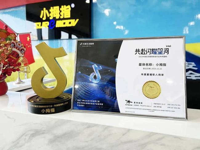 同时,在本次大会的颁奖典礼上,小拇指凭借着拔尖的职人运营能力和傲人成果,在众多行业中脱颖而出,获得了2023年抖音本地生活综合行业“年度星耀职人商家”奖,成为整个汽车后市场行业唯一一个荣获此项大奖的品牌。