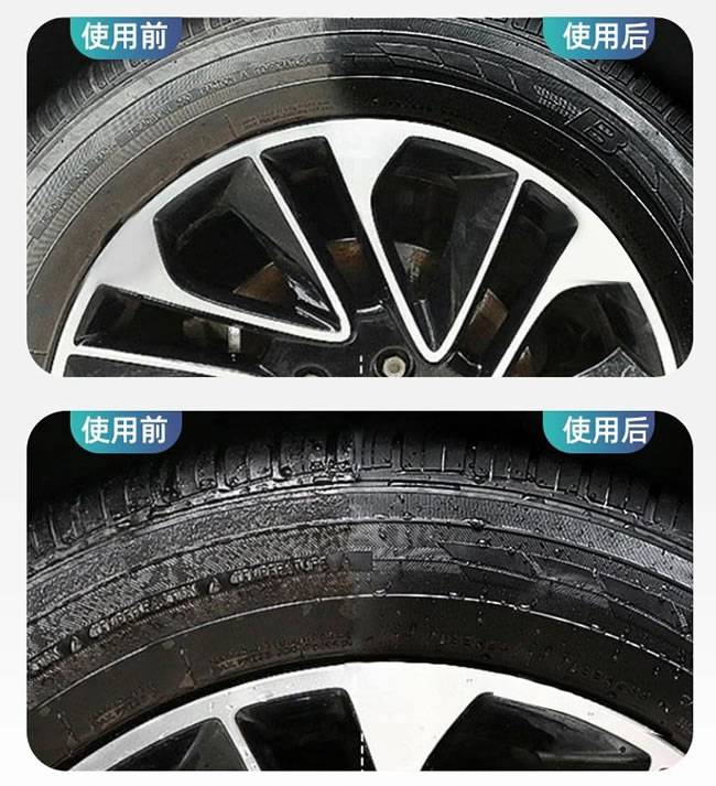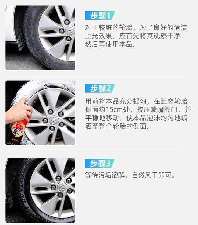 2、在数分钟内可以使轮胎侧面清洁有光泽;