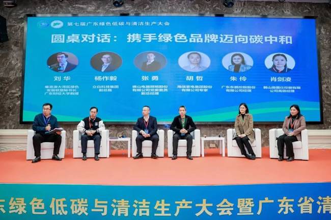 在大会圆桌对话环节,张勇围绕“携手绿色品牌迈向碳中和”主题,与多名专家学者、企业代表展开探讨,并分享了佛山照明绿色品牌建设的实践经验与成果。