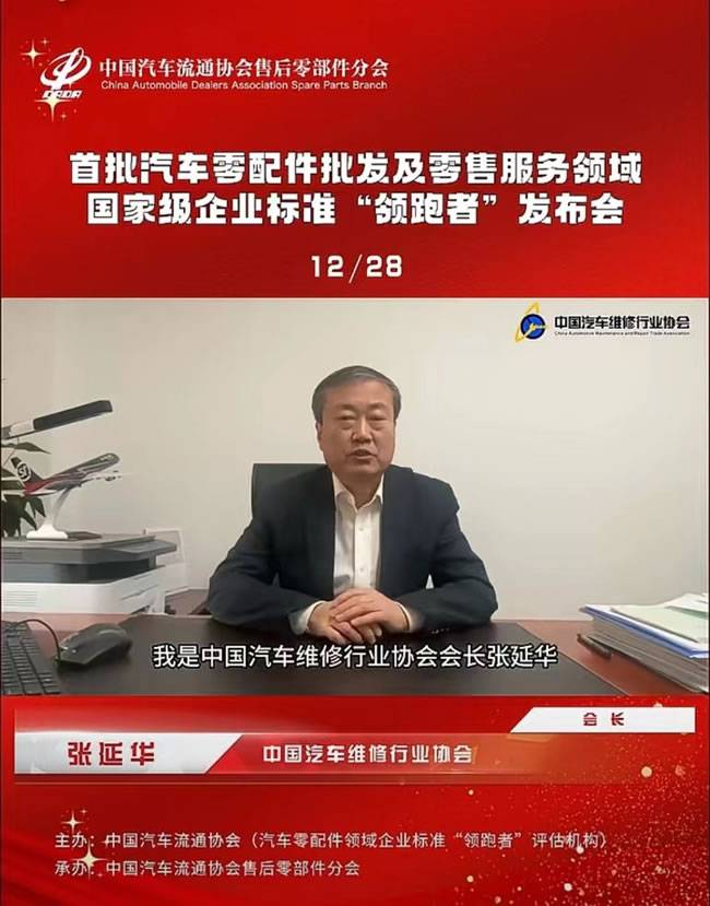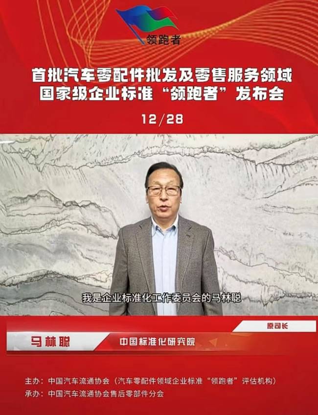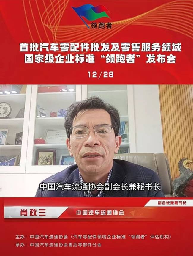 12月28日,由中国汽车流通协会主办、中国汽车流通协会售后零部件分会承办的首批汽车零配件服务领域国家级企业标准“领跑者”发布会,以售后零部件分会视频号直播的方式举行,来自国家部委、行业协会、主机厂、汽车经销商、汽车零配件等领域的领导和嘉宾齐聚线上,共同见证首批汽车零配件批发服务、汽车零配件零售服务国家级企业标准“领跑者”正式发布!
