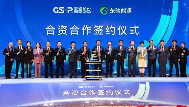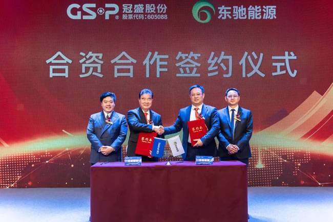 为响应全球可持续发展的号召,近日,冠盛股份(以下简称GSP)与吉林省东驰新能源科技有限公司(简称“东驰能源”)在温州云天楼瓯越大酒店进行合作签约仪式。GSP董事长周家儒、总裁周隆盛、营销副总裁赵东升、财务副总裁黄正荣、南京冠盛总经理刘元军、行政总监倪贞贞、新能源项目合资公司董事长李昌、运营总监侯延锋以及东驰能源董事长谢海明、总经理陈其安等作为双方代表出席仪式。