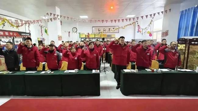 华利中高层及骨干力量参会,会议由全体参会人员诵读企业文化、宣誓、唱华利之歌正式开启。