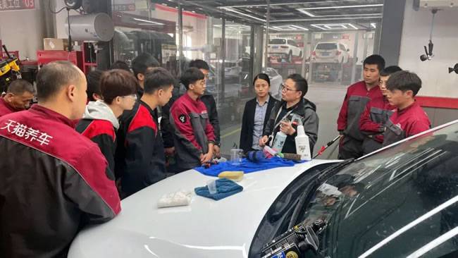 据油泵介绍,天猫养车的培训主要针对美容技师和美容主管,但也吸引了众多门店店长和SA(销售顾问)参加。整套培训内容设计具有高科学性,易于学习和教授,为门店快速复制人才提供了便利。店长和SA在掌握销售理念后,也能更有效地推广服务。“施工标准、边界科学,才能带动销售,让用户更容易接受,也降低了技师的培训难度。”