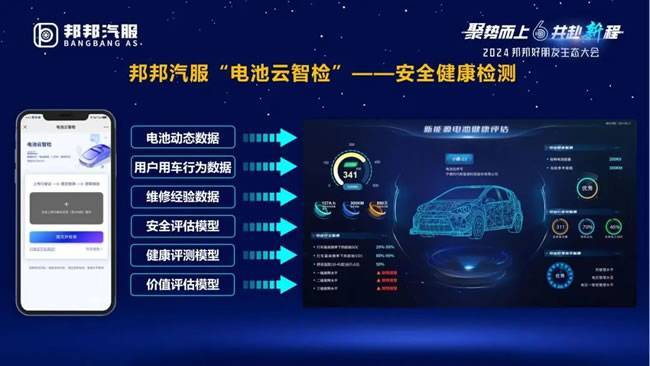 在“数智+”驱动行业协同方面,邦邦汽服通过数字化手段,实现了从合作商的准入、遴选、配单到差异化考核与退出的全生命周期数字化管理,形成了公开、公正、透明的全流程数字化运营体系。同时,在新能源领域,基于新能源汽车数字化、网联化的特性,联合保险行业、维修行业、配件行业及国家大数据平台等优质伙伴,创新构建新能源动力电池AI检测、智能风控、电池AI估价等多个行业专业模型,为行业提供智能解决方案。