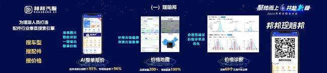 此外,在“数智+”产品创新方面,邦邦汽服以“数智+”为核心,应用AI、大数据等前沿技术,打造了理赔邦、行业价格指数与商用车理赔工具三大数字化创新工具。