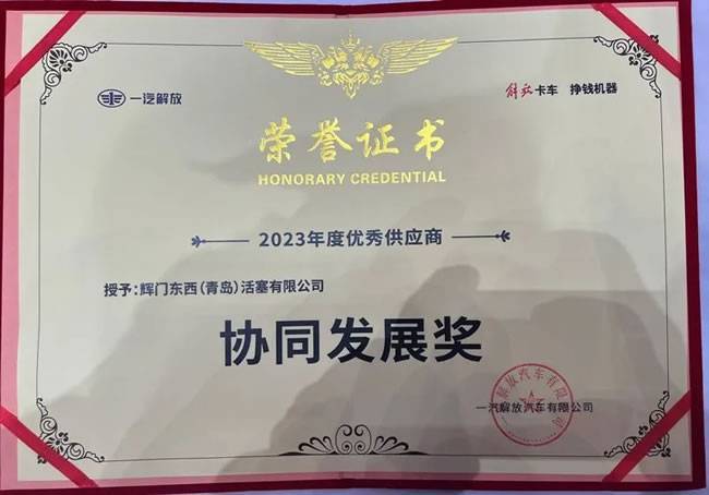 天纳克动力总成的青岛活塞工厂被一汽解放授予优秀供应商协同发展奖。青岛团队在2023年与一汽解放协同协作,攻坚克难,全力保障天然气发动机高性能活塞产品的供应。天纳克始终坚持以客户为中心,致力于提供更清洁、更高效、更可持续的动力总成解决方案。