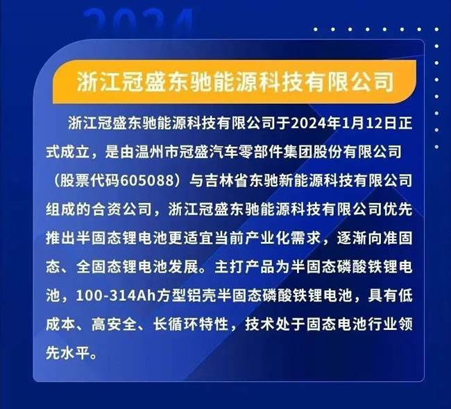 2024年1月30日上午,浙江冠盛东驰能源科技有限公司固态电池研究院成立仪式及首席科学家聘任仪式在吉林省东驰新能源科技有限公司举行。
