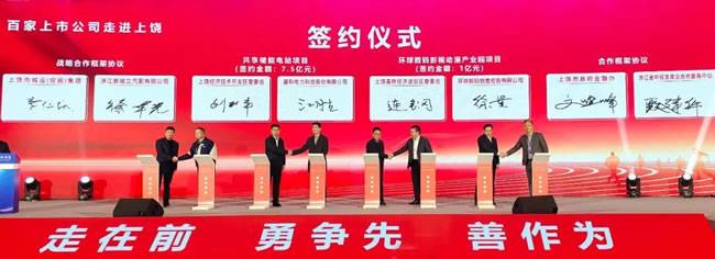 2月28日,百家上市公司走进上饶投资推介会举行,上饶市城市运营(控股)集团与新瑞立战略合作等项目签约。上饶市委书记陈云;浙江省工商联副主席、瑞立集团董事长张晓平,浙江省中经发政企合作服务中心主任王前利;上饶市委常委、常务副市长饶清华,市人大常委会副主任、鄱阳县委书记周金明,市委秘书长孔先锋,以及百家上市公司代表出席投资推介会,见证签约仪式。上饶市副市长郭峰主持。上饶市委常委、常务副市长饶清华致辞。他表示,上饶将牢固树立“凡是长三角能做到的、上饶都要做到”理念,以最优厚的政策、最周到的服务、最完善的保障,为企业安心经营、放心投资、专心发展,提供最灿烂的阳光、最合适的土壤、最滋润的雨露。