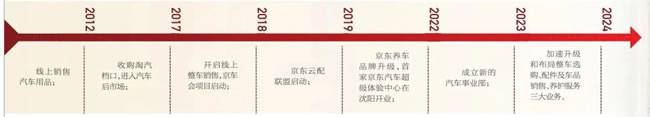 其实,京东在汽车领域的布局早在10多年前就埋下伏笔。彼时,我国汽车市场正处在高速增长期,汽车自然是电商巨头无法忽视的品类,京东选择了以汽车用品的线上销售作为切入口。2012年,汽车用品成为京东的重要品类,合作品牌超过5000个;2017年,布局汽车后市场业务;2018年,试水线上整车业务;2020年,京东汽车事业部成立,搭建横跨汽车全链条服务平台的构想初步形成。
