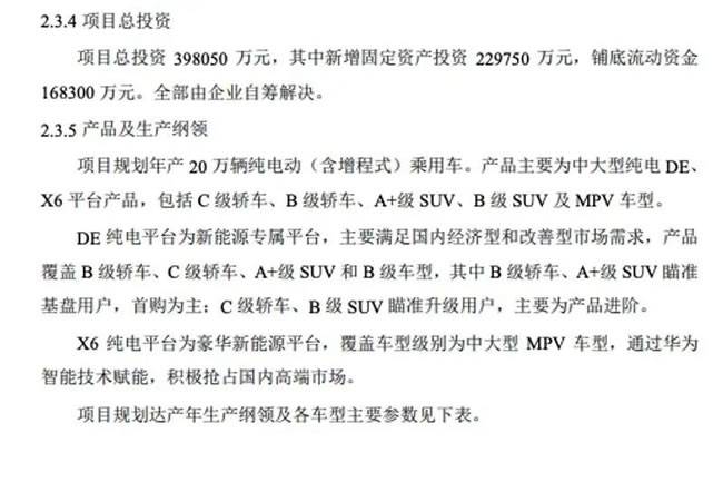 X6纯电平台为豪华新能源平台,覆盖车型级别为中大型MPV车型,通过华为智能技术赋能,积极抢占国内高端市场。该车型预计车长达5.2米,轴距达3.2米。X6平台规划的年产能为3.5万辆。按照环评公示中的表述,X6平台车型华为参与程度会更深。