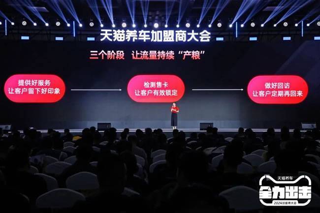 加盟商大会上,天猫养车公布了2024年全新流量运营策略,整合抖音、美团、高德资源,加深平台布局,点燃流量引擎,内部以“三好”提质增效,实现流量变“留量”。