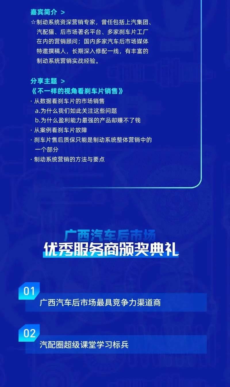 此外,为鼓励全国各地渠道商、终端服务商对行业的贡献,特为优秀渠道商、终端服务商及学习标兵进行嘉奖,在大会现场进行颁奖仪式,树立标杆,推动当地汽车后市场发展。