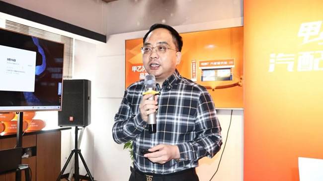 交流会上,甲乙丙丁总裁阮晟峪先生亲临现场,为参会的伙伴介绍了甲乙丙丁创办初衷与发展逻辑,重点介绍了汽配服务站项目背后的产品互联逻辑。