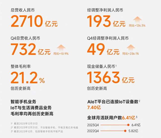 3月19日,雷军发文称:”小米汽车超级工厂正式揭幕。“,并表示,这次董事会选择在小米汽车工厂召开,董事们参观了工厂,并试驾了小米SU7。小米集团董事会在小米汽车工厂召开,这也凸显了以雷军为核心的小米集团如今的工作重心。根据小米最新发布的财报,2023年小米集团总收入2710亿元,经调整净利润193亿元,同比增长126.3%。