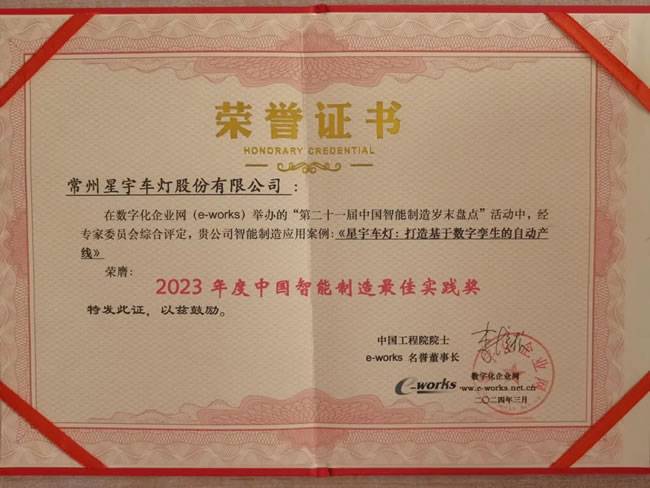 由星宇股份智能装备部主导研发的《基于数字孪生的控制器自动线》项目,在激烈的智能制造最佳实践奖评选中脱颖而出,荣获该奖项。本次评选汇聚了国内91家知名企业,经过激烈角逐,仅有22家企业获此殊荣。星宇股份有幸与一汽大众、广汽本田、格力电器、蜂巢能源、特步等知名企业共获该奖项,展现了公司在智能制造领域的卓越实力。