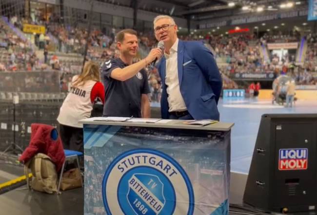 德国时间4月28日晚,在德国斯图加特与汉堡的手球比赛中,橙仕汽车中德合作品牌TYn.e在赛场亮相,橙仕汽车Tyne GmbH CEO Markus Graf在现场接受采访并发表讲话,向当地民众介绍TYn.e末端配送智能物流车。