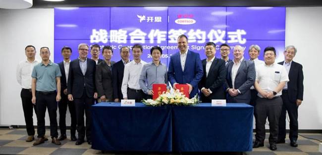 此次签约,开思创始人&CEO江永兴、CMO张伟、供应链副总裁宫大鹏、国际品牌产品线总经理刘瑞,科帝克全球总裁Christian Dickopf、战略与全球采购副总裁Brandon Wilson、科帝克中国总经理王宇华以及来自科帝克母公司NOK集团和科德宝集团的多位高层领导共同出席了本次签约仪式。